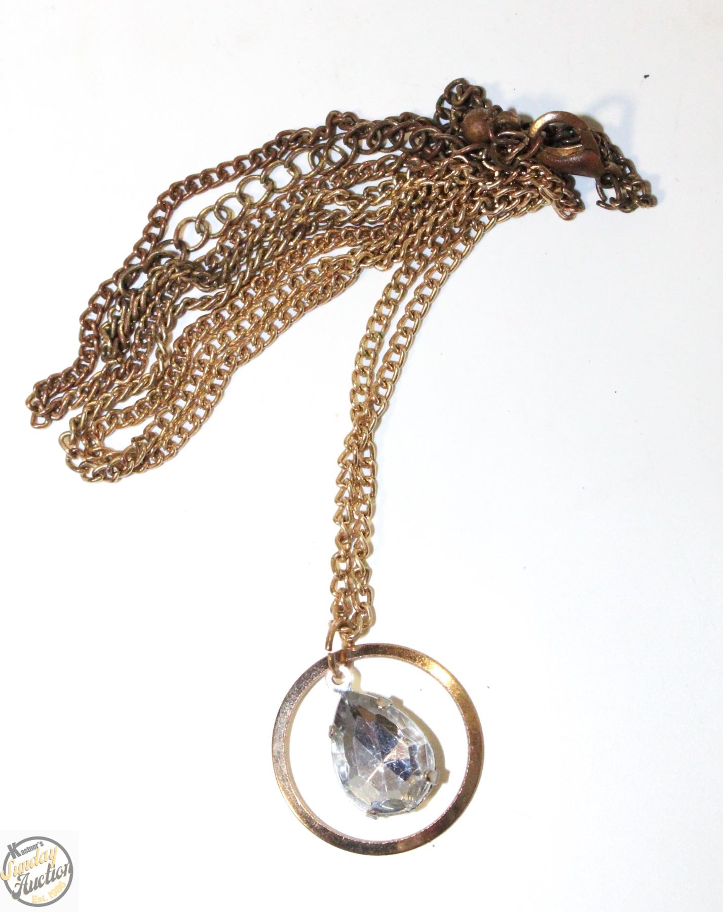 GOLD TONE TEARDROP JEWEL IN RING PENDANT NECKLACE