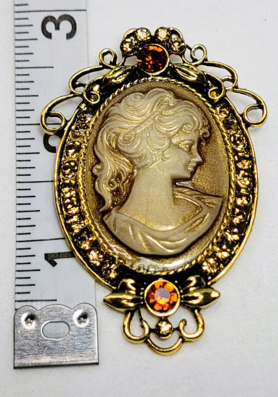 BROOCH WITH AMBER AND GOLDEN COLORED CRYSTALS. JEWELLERY