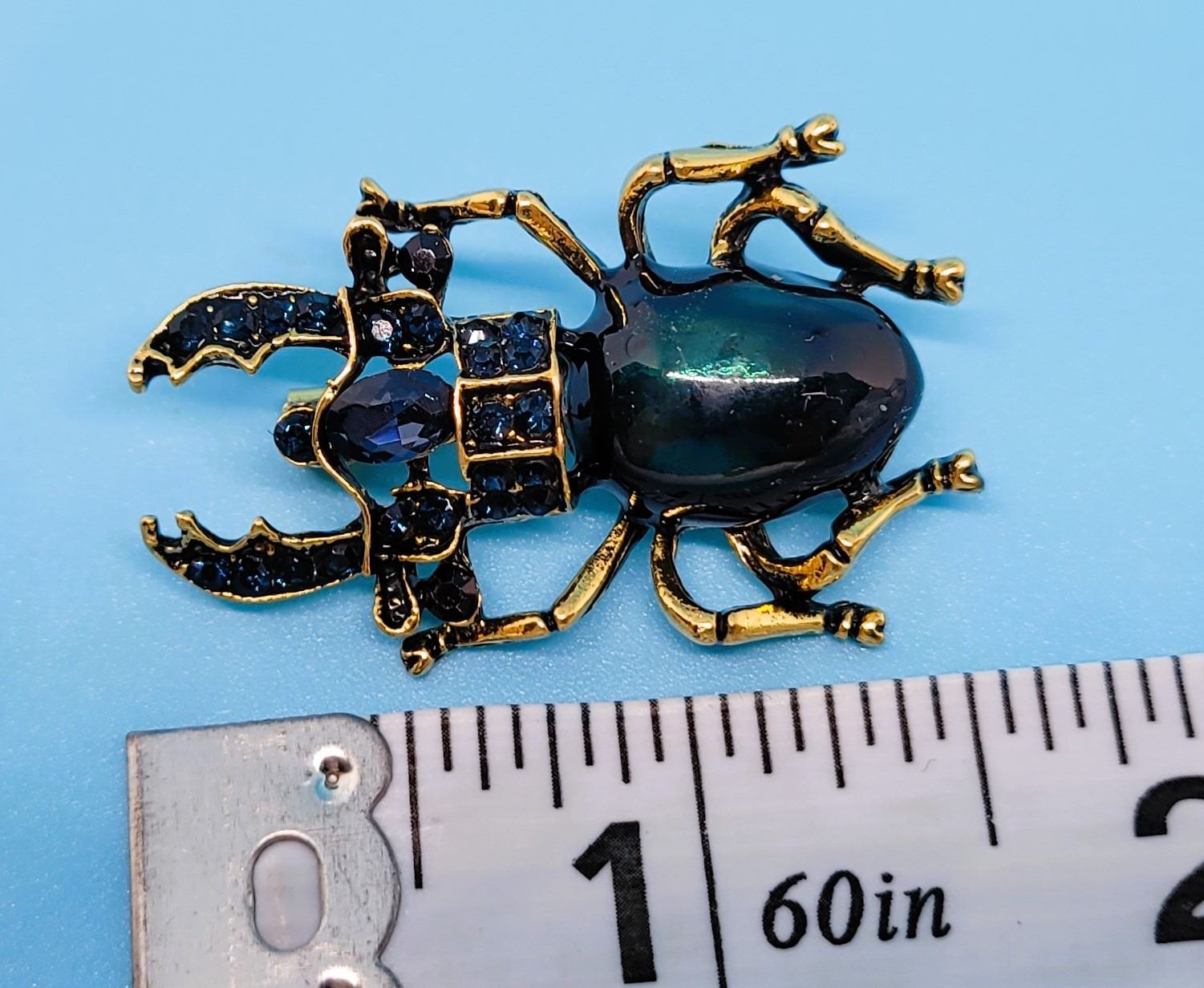 AND IRRIDESCENT BLUE ENAMEL BEETLE BROOCH. JEWELLERY