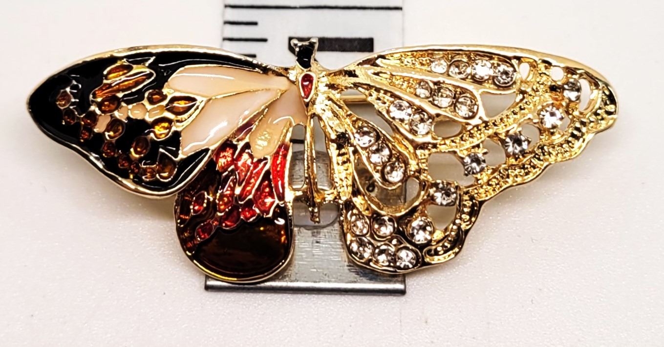 GOLD TONE WITH ENAMEL AND CRYSTALS,