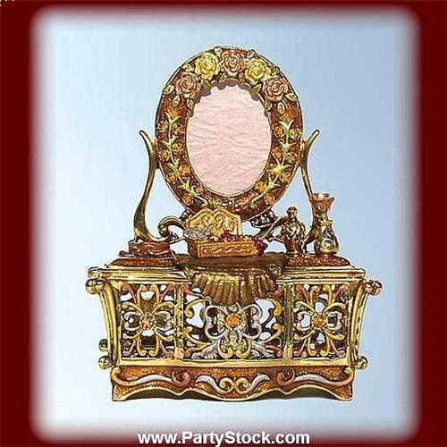24K GOLD VANITY SWAROVSKI CRYSTAL JEWELRY BOX DOLL D-1208<p>Height: 1.5 inch