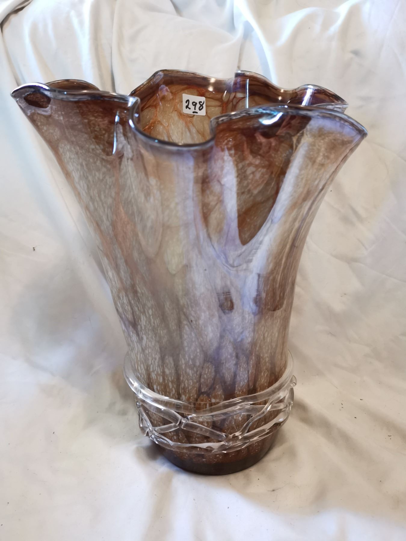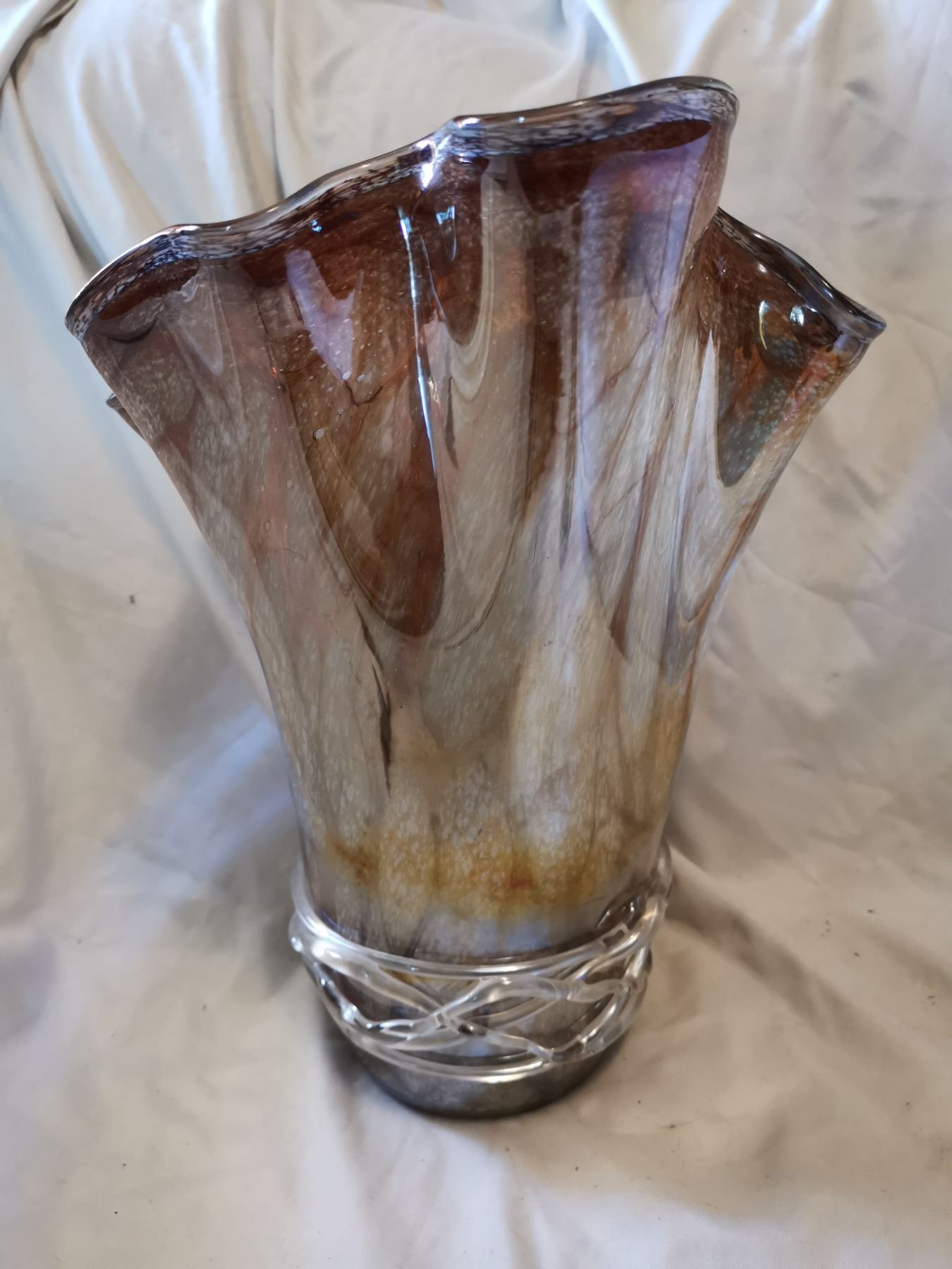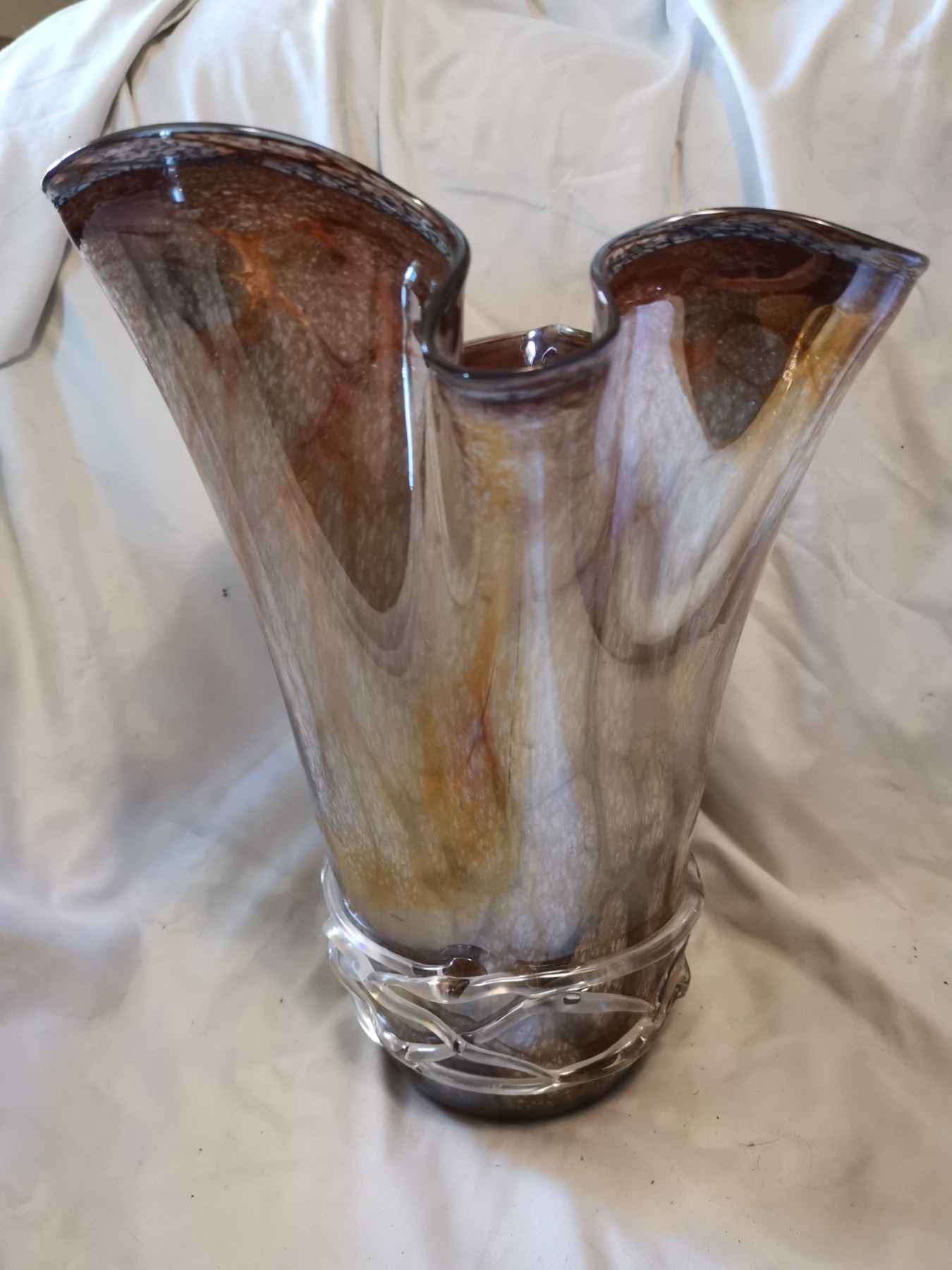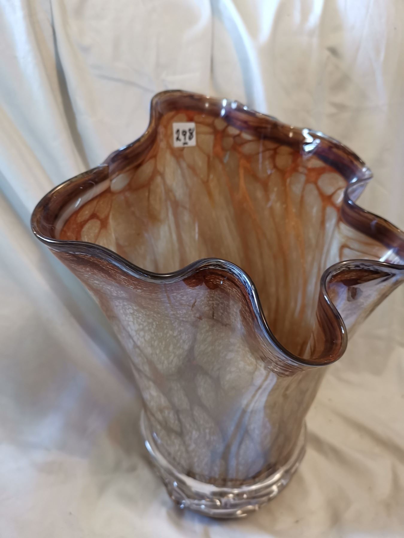 GOLD VEIN GLASS VASE, ARTISTIC DESIGN, 13” HIGH