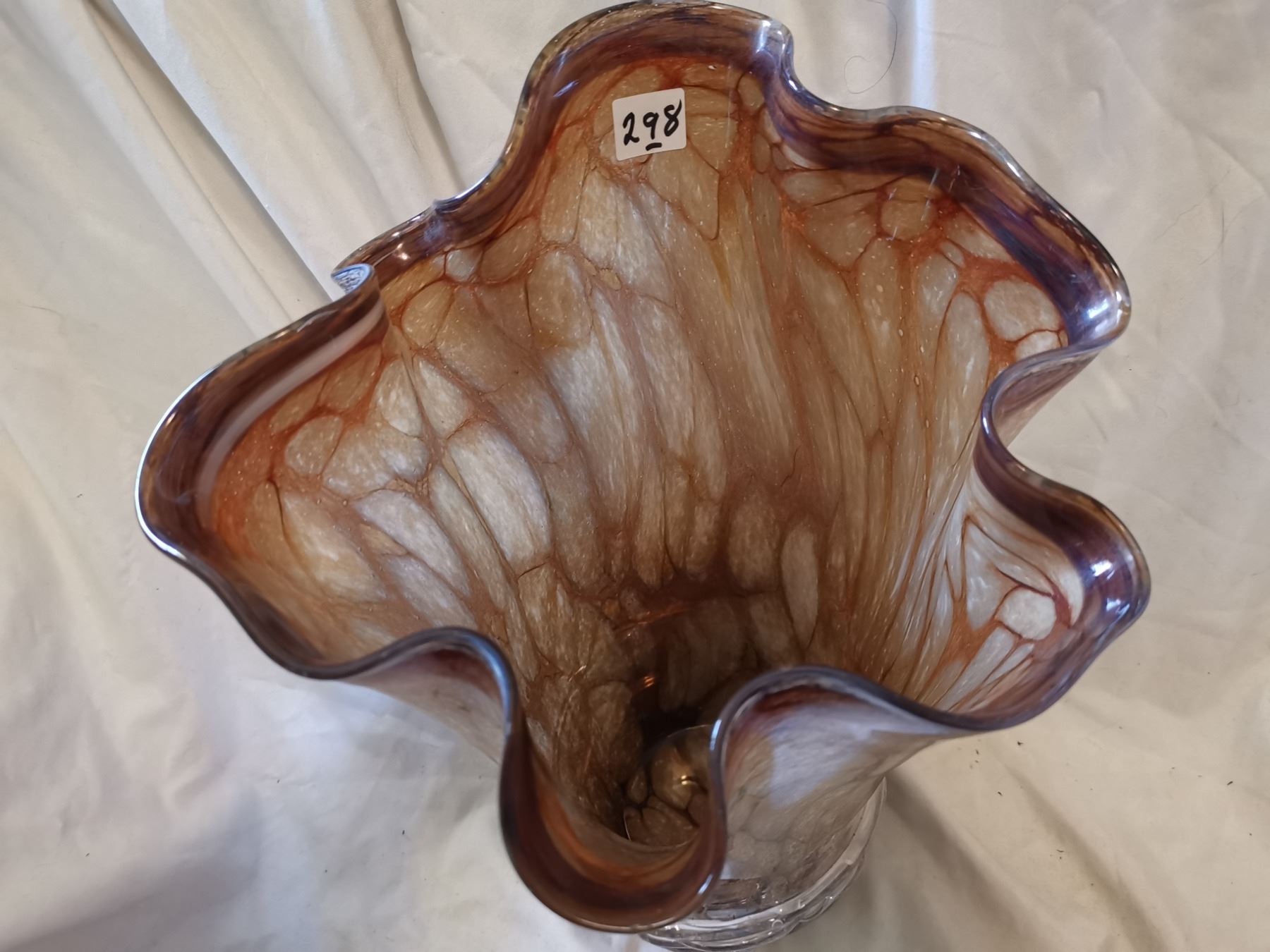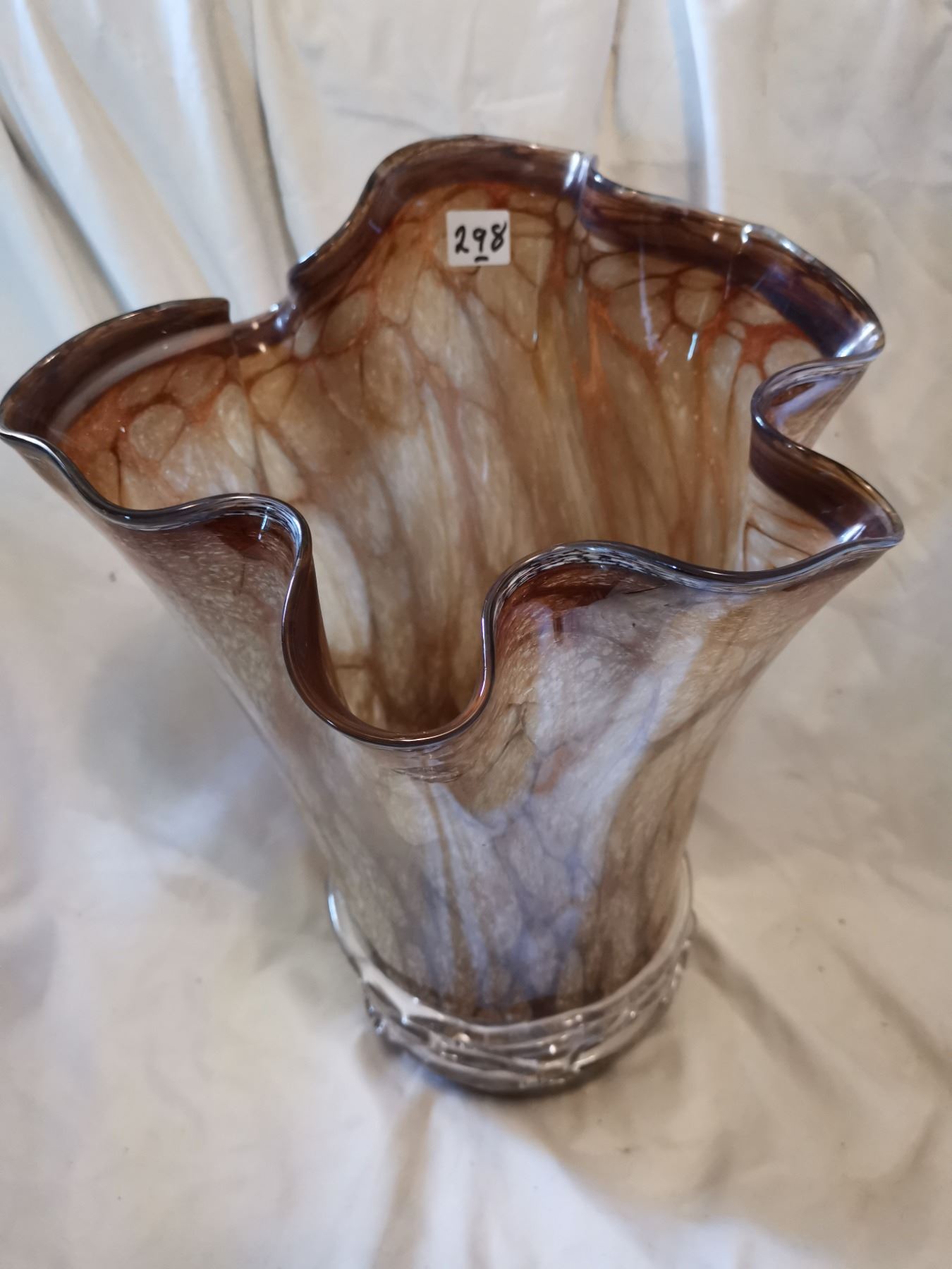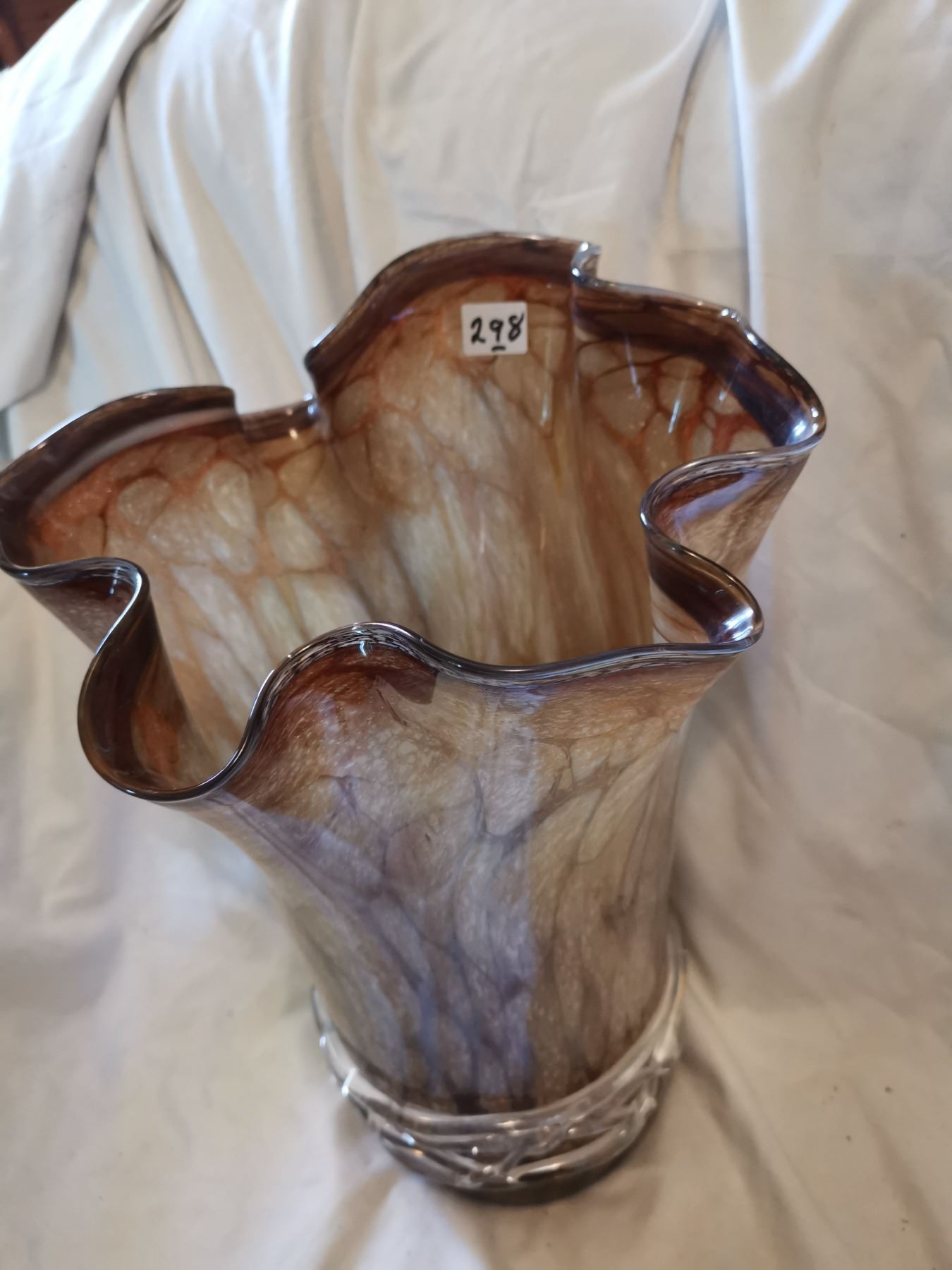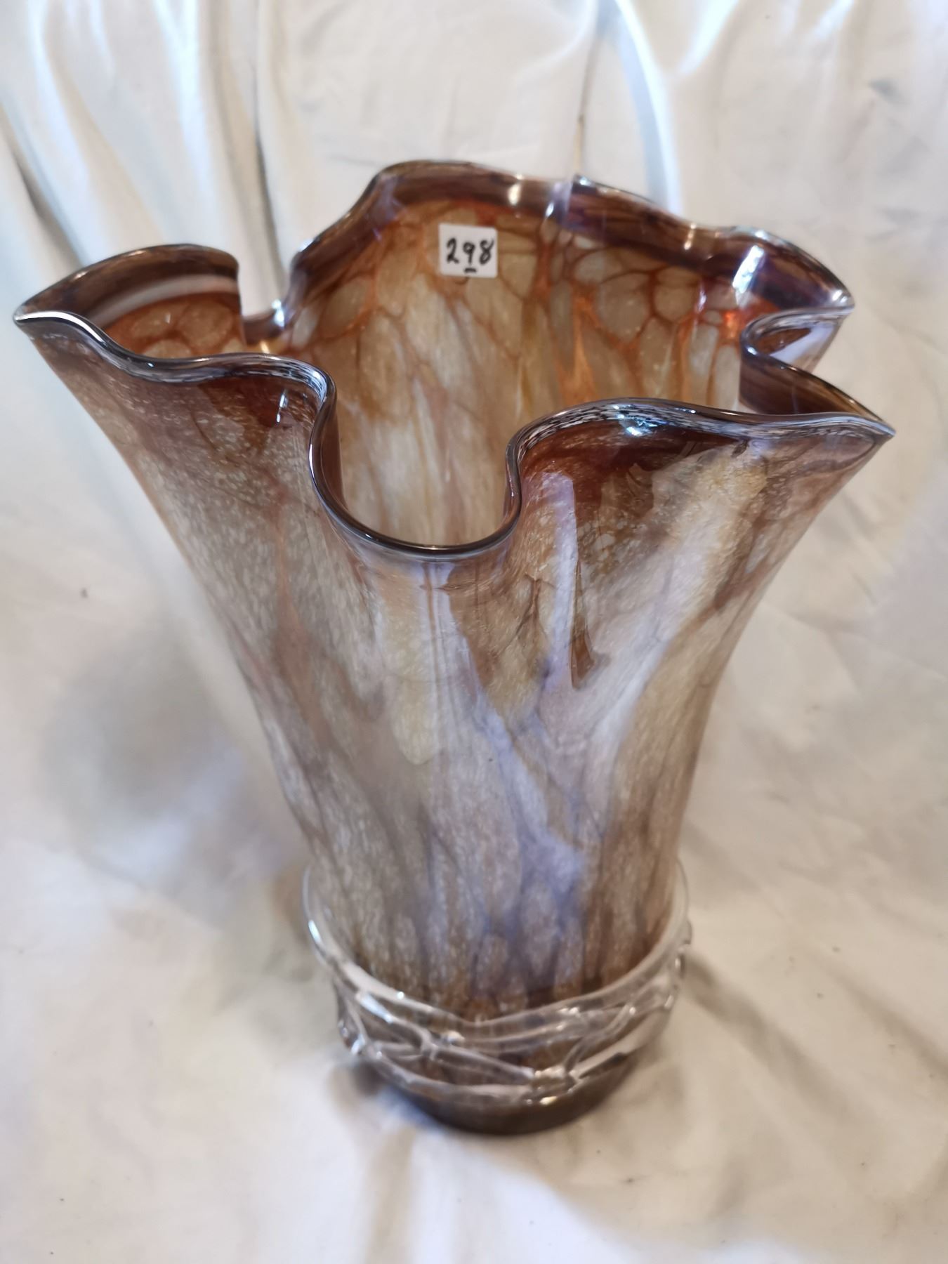 GOLD VEIN GLASS VASE, ARTISTIC DESIGN, 13” HIGH