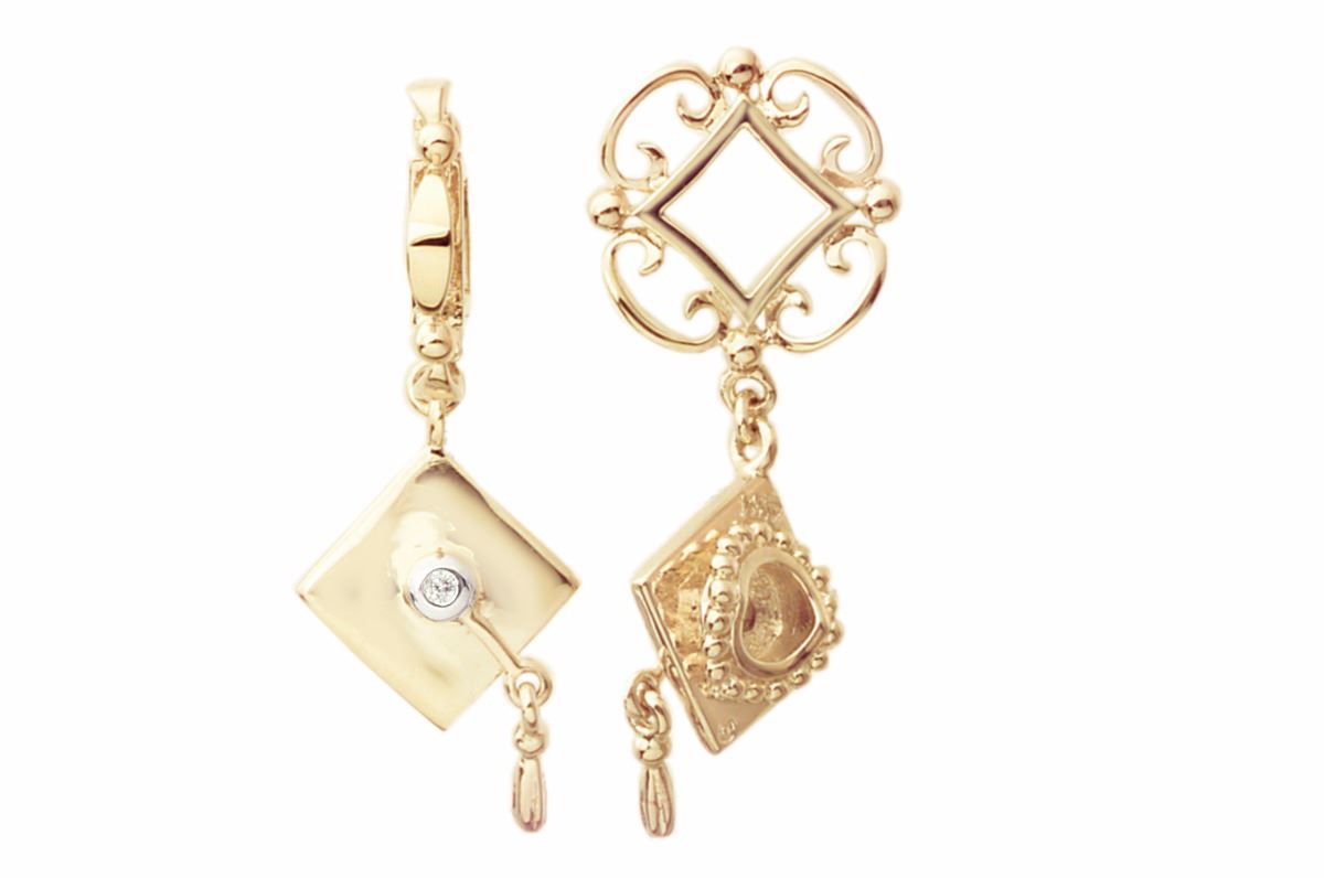 GOLD WHEEL / DIA GRADUATION HAT DANGLE (#169D) TOTAL CT WEIGHT