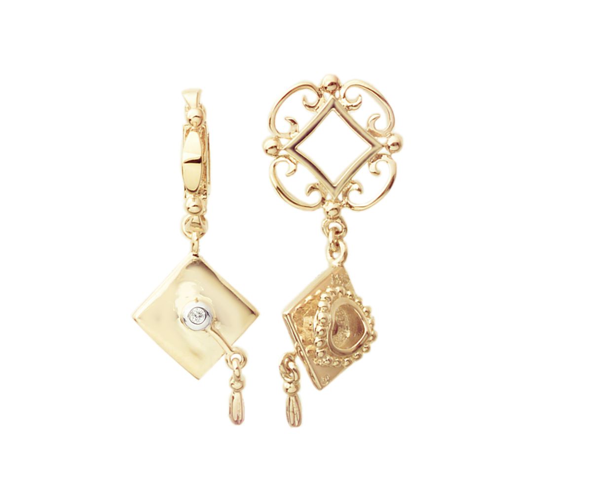 GOLD WHEEL / DIA GRADUATION HAT DANGLE (#169D) TOTAL CT WEIGHT