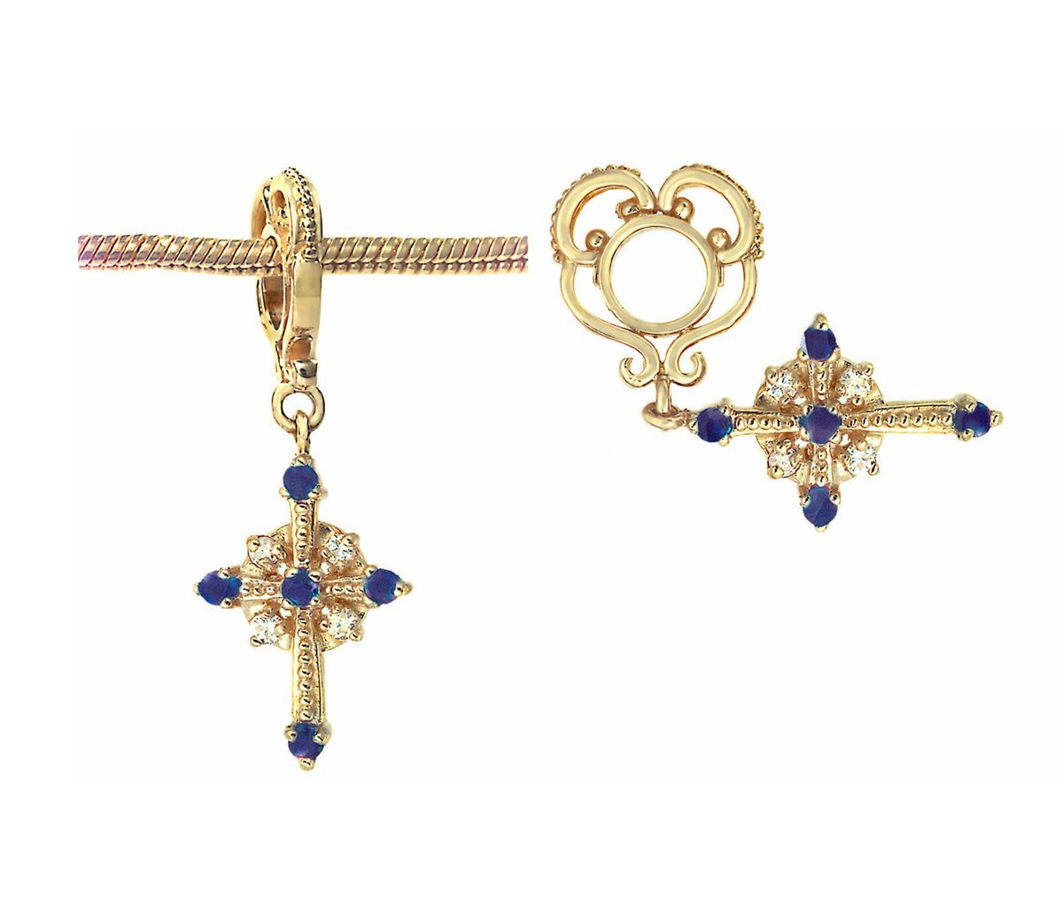 GOLD WHEEL W/ SAPPHIRE CROSS DANGLE (#27S) TOTAL CT WEIGHT 0.1275