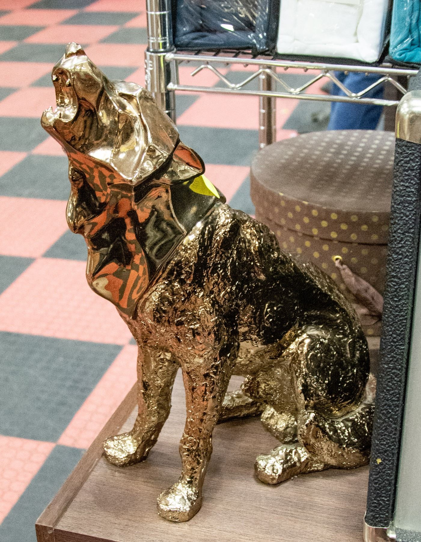 GOLD WOLF STATUE 17.5 INCHES TALL