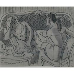 GOLDBERG, Eric, 1890-1969. "Tea Time". Mélange, signé. Mixed media, signed. 15 3/4" x 20" - 40cm x 50.8cm. $300/400