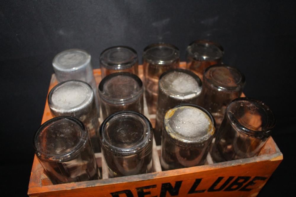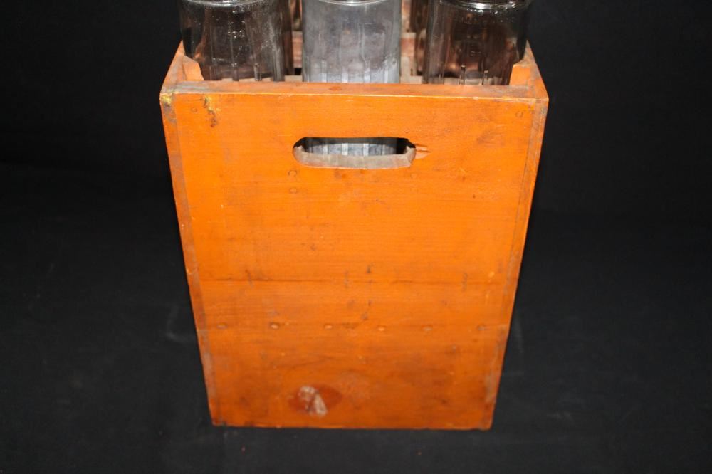 WOOD RACK. 12 BOTTLES. 2 MARKED UNIQUE, 1 WITH PAPER LABEL. REST ARE UNMARKED. APPROXIMATE SHIPPING COST $75 TO $150. THIS ITEM IS GUARANTEED TO BE OLD AND ORIGINAL