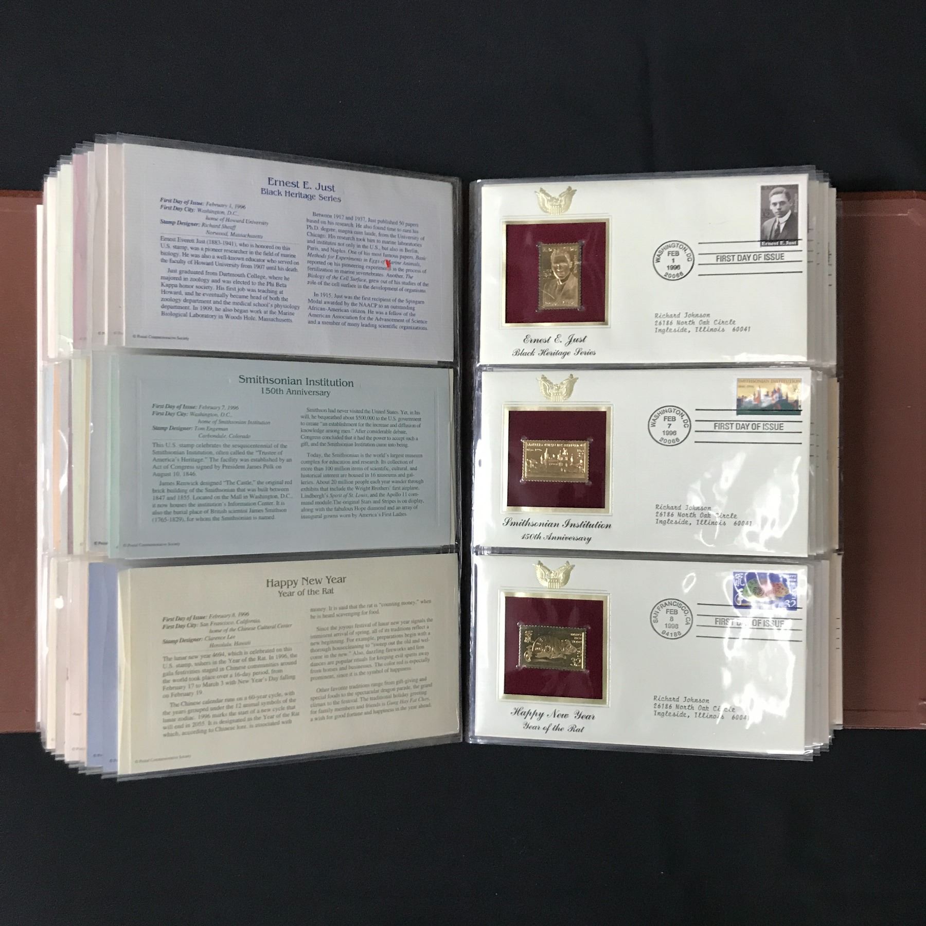GOLDEN REPLICAS OF UNITED STATES STAMPS - 72 FIRST DAY STAMPS