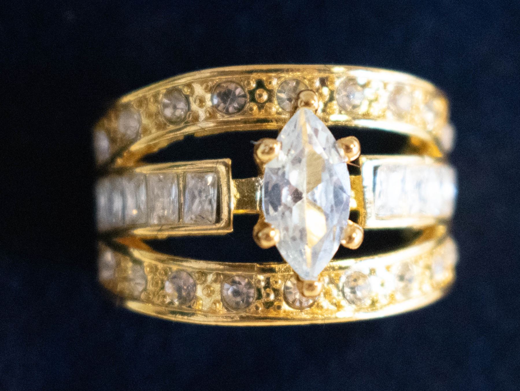 GOLDEN TONED THREE ROWS OF WHITE RING SZ8