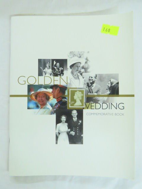GOLDEN WEDDING COMMEMORATIVE BOOK, ISSUED BY BRITISH POST OFFICE, 2 SETS STAMPS/POST CARDS