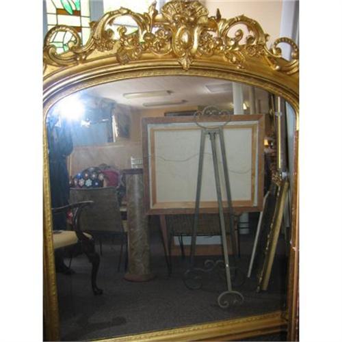 THIS HANDSOME MIRROR WAS ORIGINALLY IN A GRAND EARLY VICTORIAN HOME. IT HAS BEEN RE-GILDED WITHIN THE LAST 20 YEARS. YOU NEED HIGH CEILINGS TO ACCOMDATE THIS PERIOD ANTIQUE.