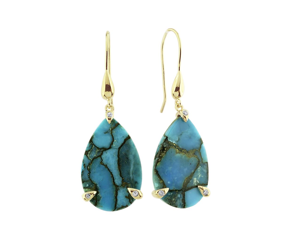GOLDPLATED COPPER TURQUOISE / DIA FISHHOOK EARRINGS (#6504TQ) TOTAL CT WEIGHT 9.9