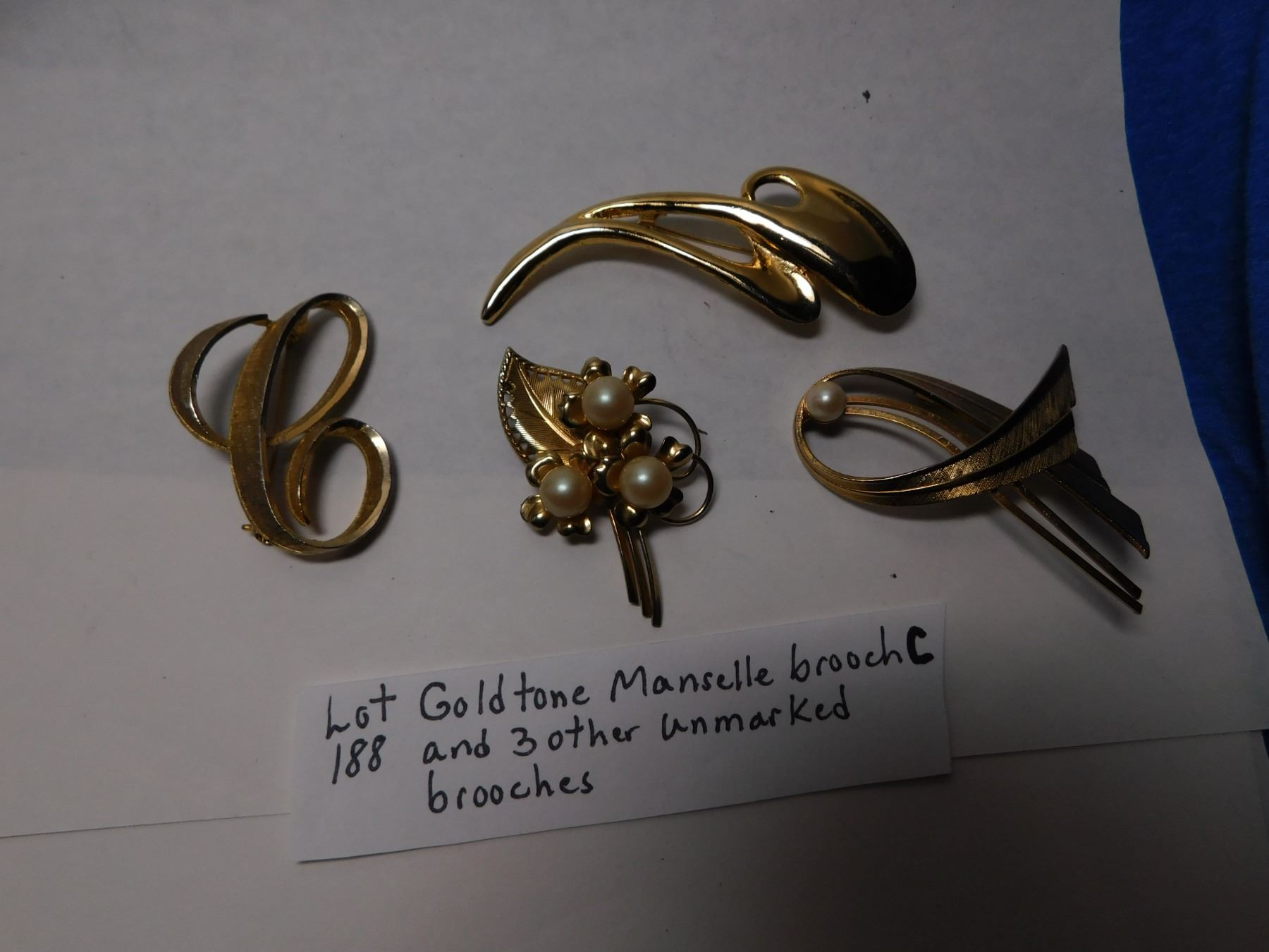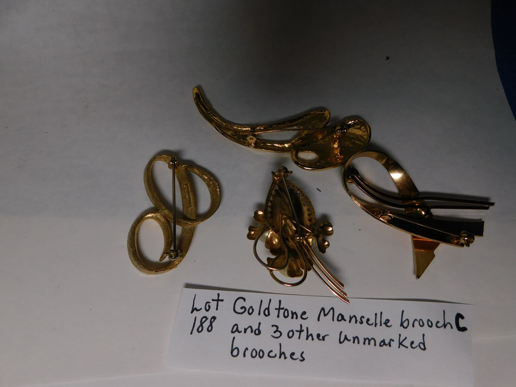 GOLDTONE MANSELLE BROACH AND 3 UNMARKED BROACHES