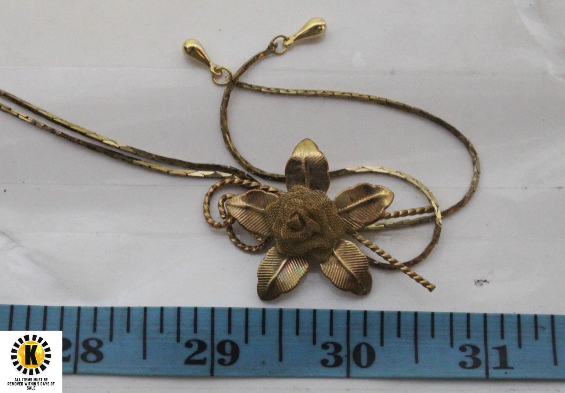 GOLDTONE NECKLACE ATTACHED GOLD TONE MESH FLOWER