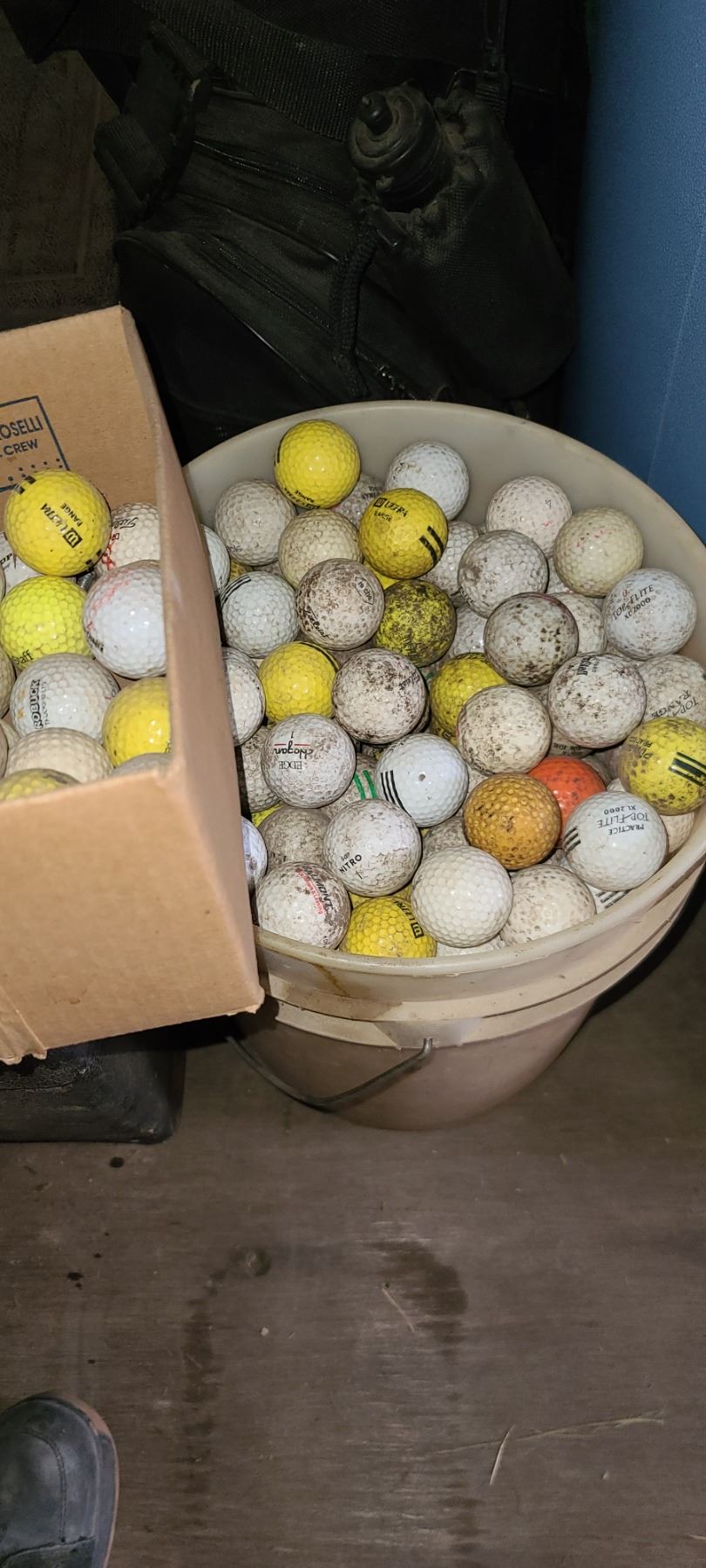 GOLF CLUB & 5 GAL (PAIL) GOLF BALLS
