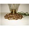GONE WITH THE WIND STYLE LAMP. Electrified. Clear & frosted glass bowl and shade and decorated with embossed & relief floral decorations. Polished brass base and font. Burner knob and oil cap are marked “Success”. 28” H