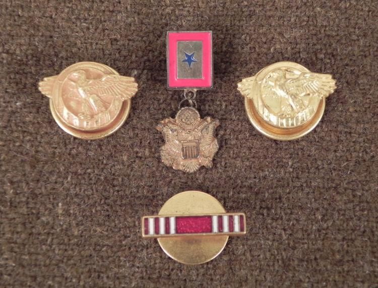 GOOD CONDUCT PIN-SONIN SERVICE & 3 RUPTURED DUCKS LAPEL PINS GOLD TONED WWII