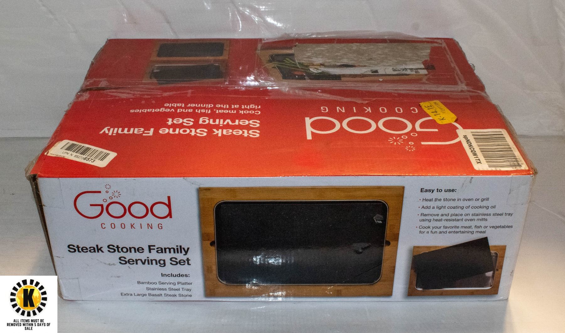 STAINLESS STEEL SERVING TRAY AND BAMBOO PLATTER, AMZ SES **THE STONE HAS A CRACK IN IT, STILL FULLY IN TACT, SEE PICTURES**