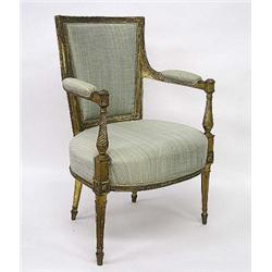 GOOD PAIR OF DIRECTOIRE CARVED AND GILTWOOD FAUTEUILS