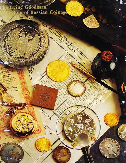 Superior Galleries. THE IRVING GOODMAN COLLECTION OF RUSSIAN COINAGE. Beverly Hills, Feb. 11-12, 1991. 4to, original pictorial card covers. (10), 120 pages; 1767 lots; illustrated throughout and on 6 color plates. PRL laid in. Covers scuffed. Near fine. A very important sale of Russian coins.