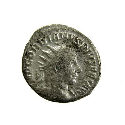 GORDIAN III c. 238-244 A.D. #60 AR ANTONINIANUS GORDIAN HOLDS SPEAR. S 2360