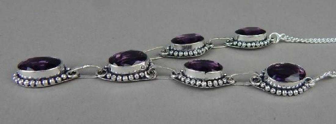 GORGEOUS 53.50 CT AMETHYST NECKLACE. EXCELLENT COLOR SATURATION AND A STRONG EVEN FLASHING TONE. EYE CLEAN. MOUNTED IN .925 STERLING SILVER. 19 " LONG .140.50 CTTW. ABSOLUTELY STUNNING . HEATED TO ENHANCE COLOR.