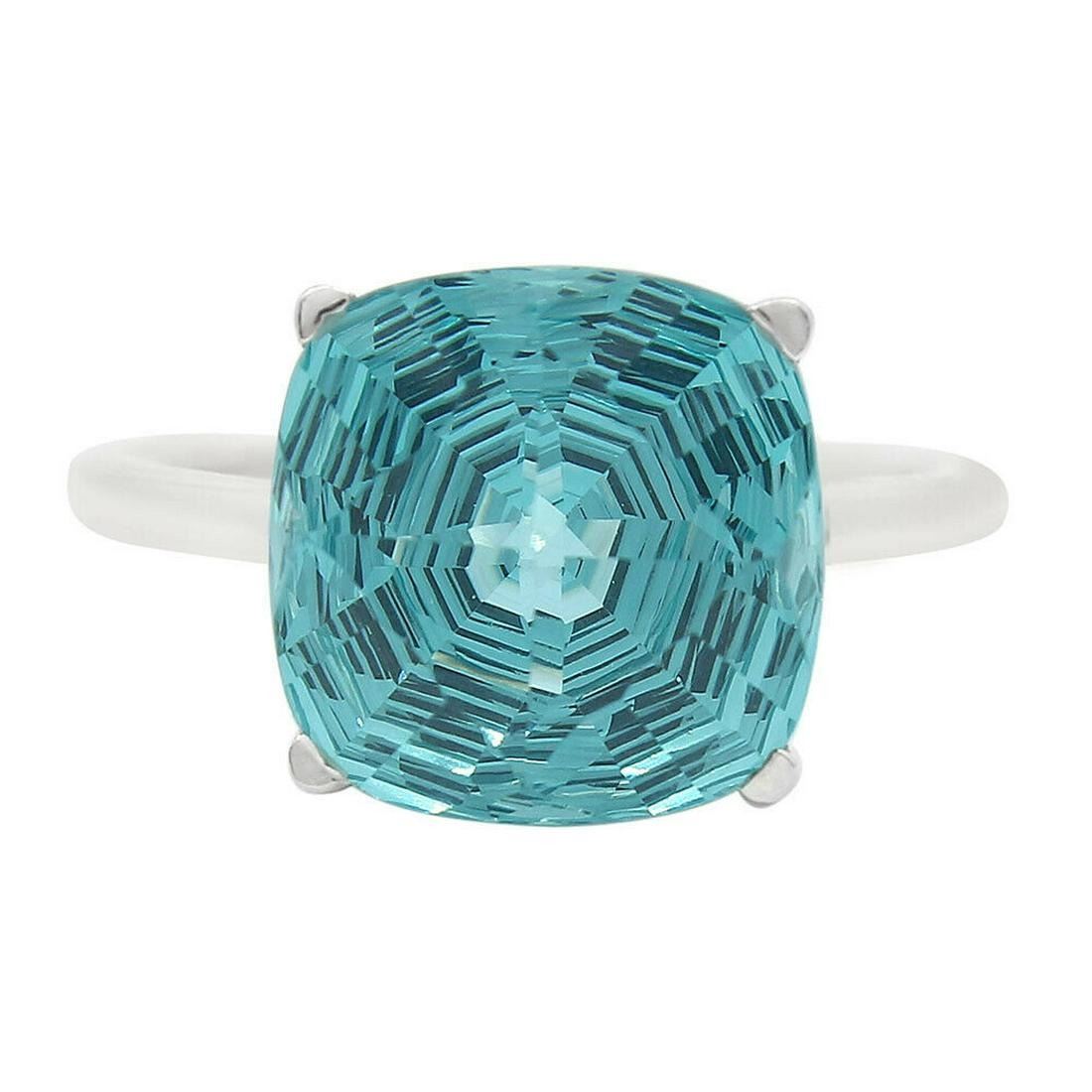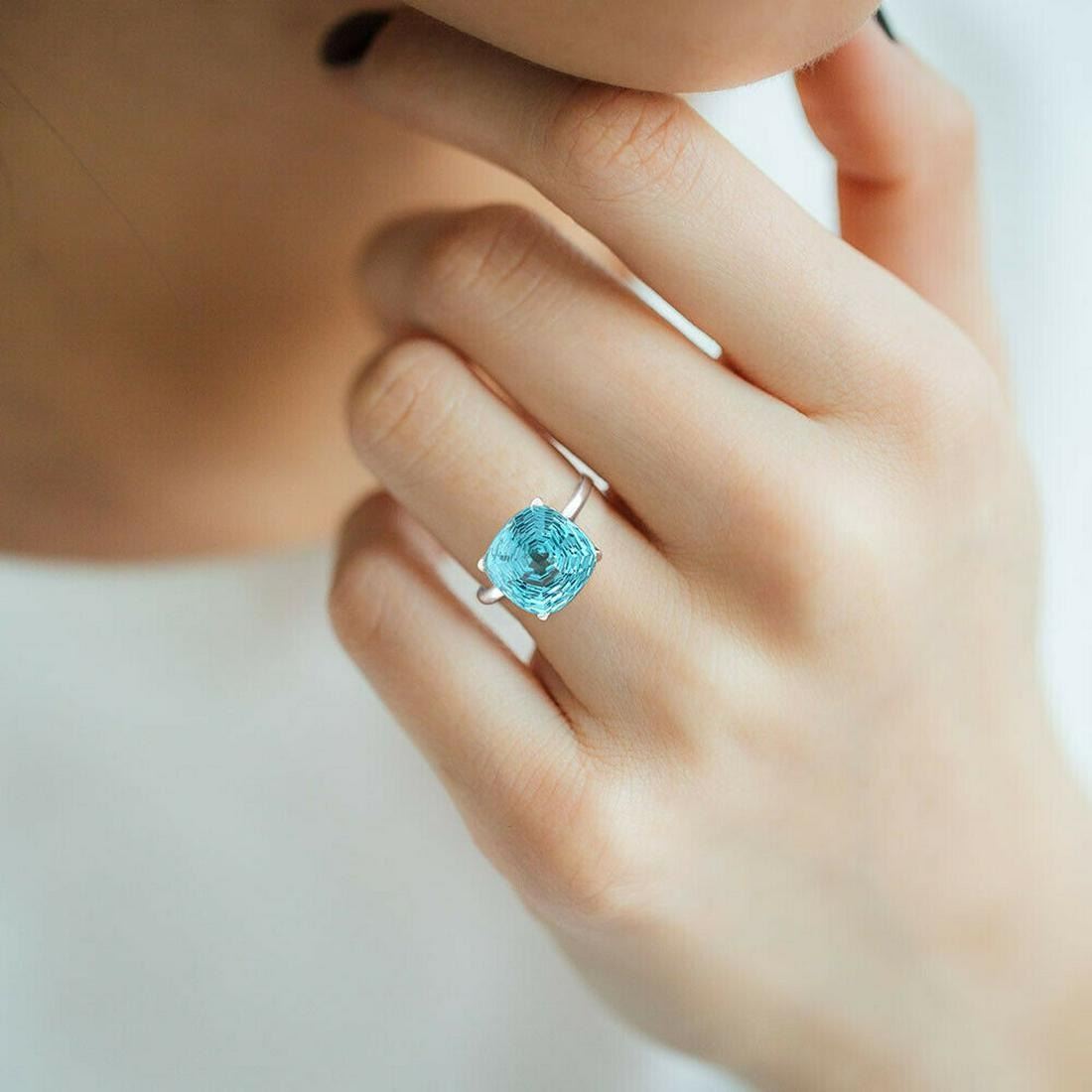 GORGEOUS 7 CT PARAIBA TOURMALINE RING. THIS LAB CREATED PARAIBA IS A NEAR FLAWLESS FANCY ROUND CUT. CLEAN MOUNTED IN SOLID .925 STERLING SILVER. CUSHION CUT. SIZE 8 . GRAM TOTAL WT IS APPROX 4.4 GRAMS