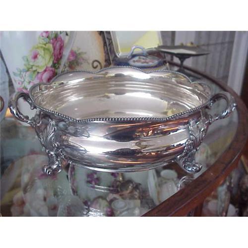 <tr><td>Title:GORGEOUS ANTIQUE SILVERPLATE FOOTED DISH</td></tr>