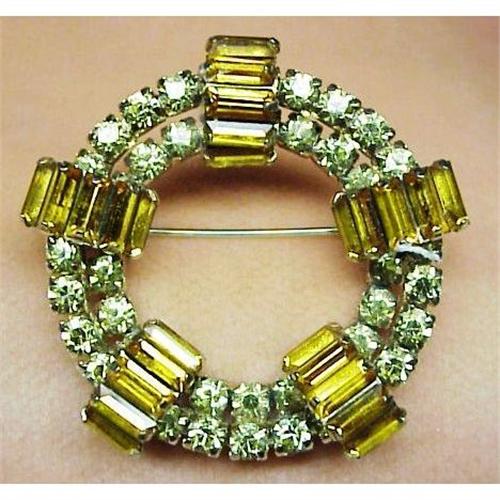 GORGEOUS 3 TIER CIRCULAR BROOCH - ART DECO STYLE, IT COMES IN LOVELY CLEAR AND WARM TOFFEE COLOR, EACH STONE IS SECURED WITH THE PRONGS,CLASP WORKS VERY WELL, MEASURES ABOUT 1 1/4" IN A DIAMETER - US BUYER TO PAY 7.00 FOR SHIPPING PLUS INSURANCE.THANKS.