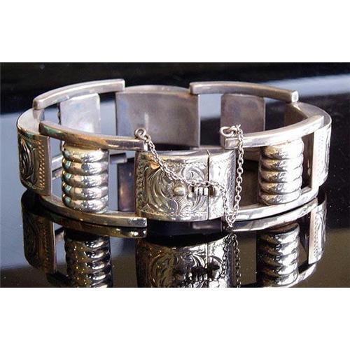 <tr><td><font size="2" face="Arial, Helvetica, sans-serif"><strong><font color="#000033">Title:</font></strong>GORGEOUS ART DECO SILVER BRACELET 1930's #135</font></td></tr>