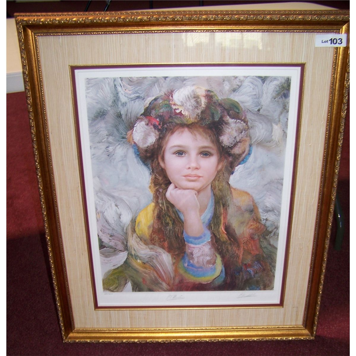 GORGEOUS FINE ART LITHOGRAPH, SIGNED AND NUMBERED, PORTRAIT OF A BEAUTIFUL YOUNG GIRL, CUSTOM FRAMED