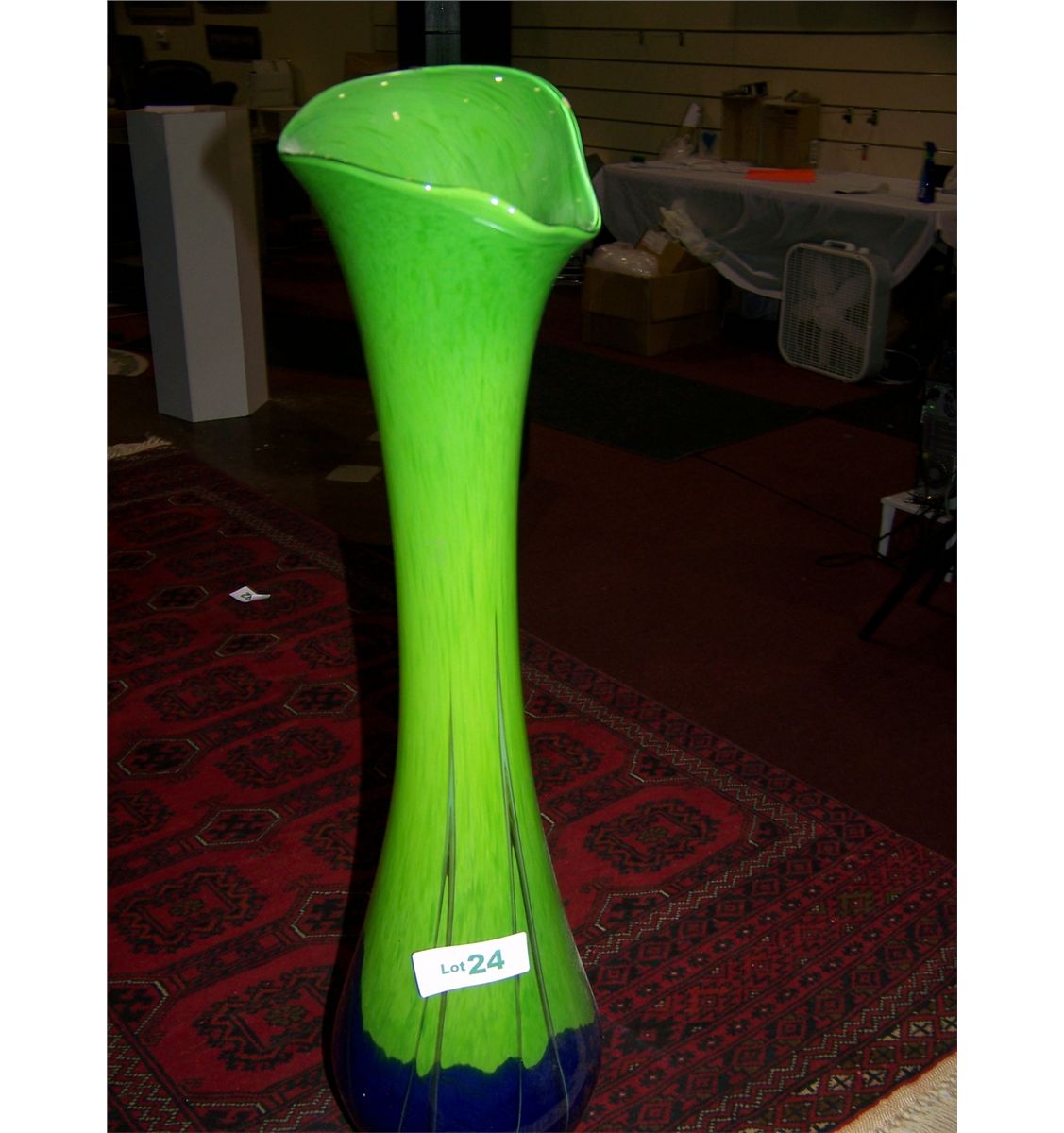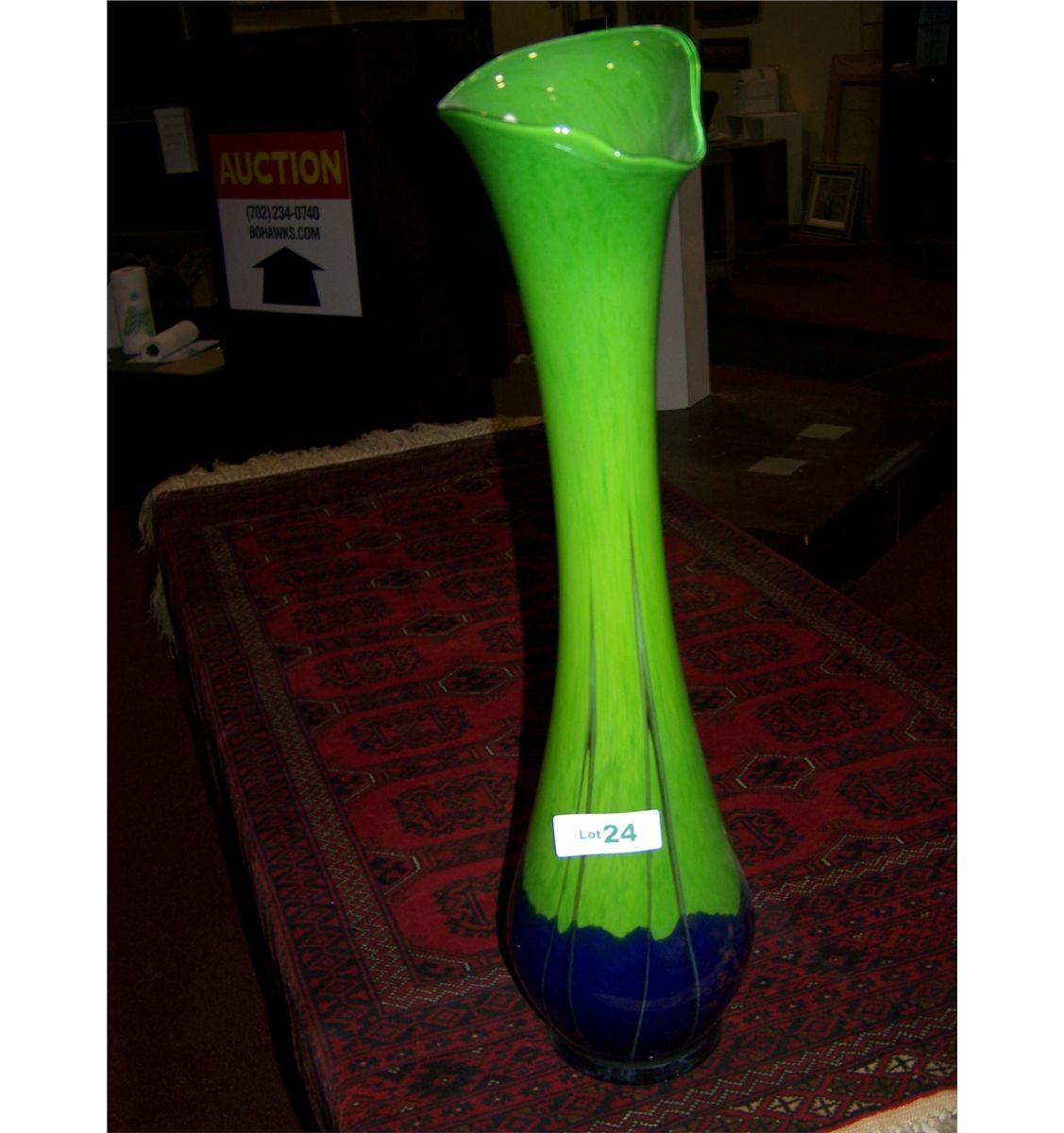 GORGEOUS GREEN & BLUE HAND BLOWN FINE ART GLASS VASE 26  TALL