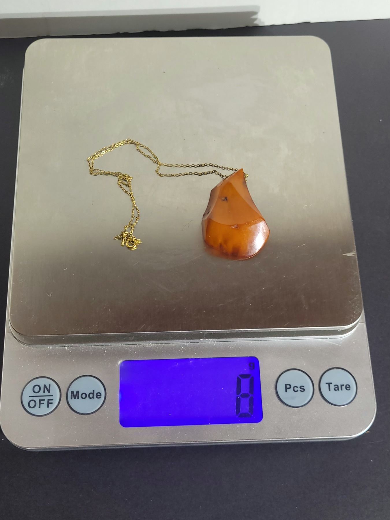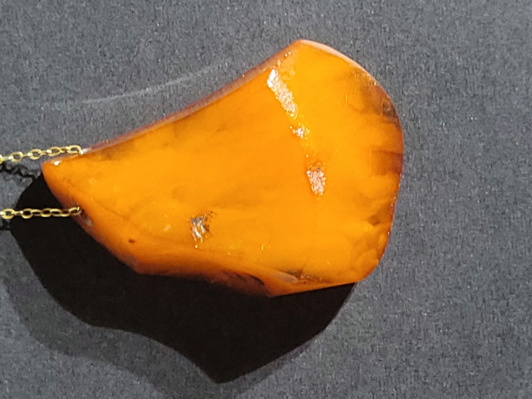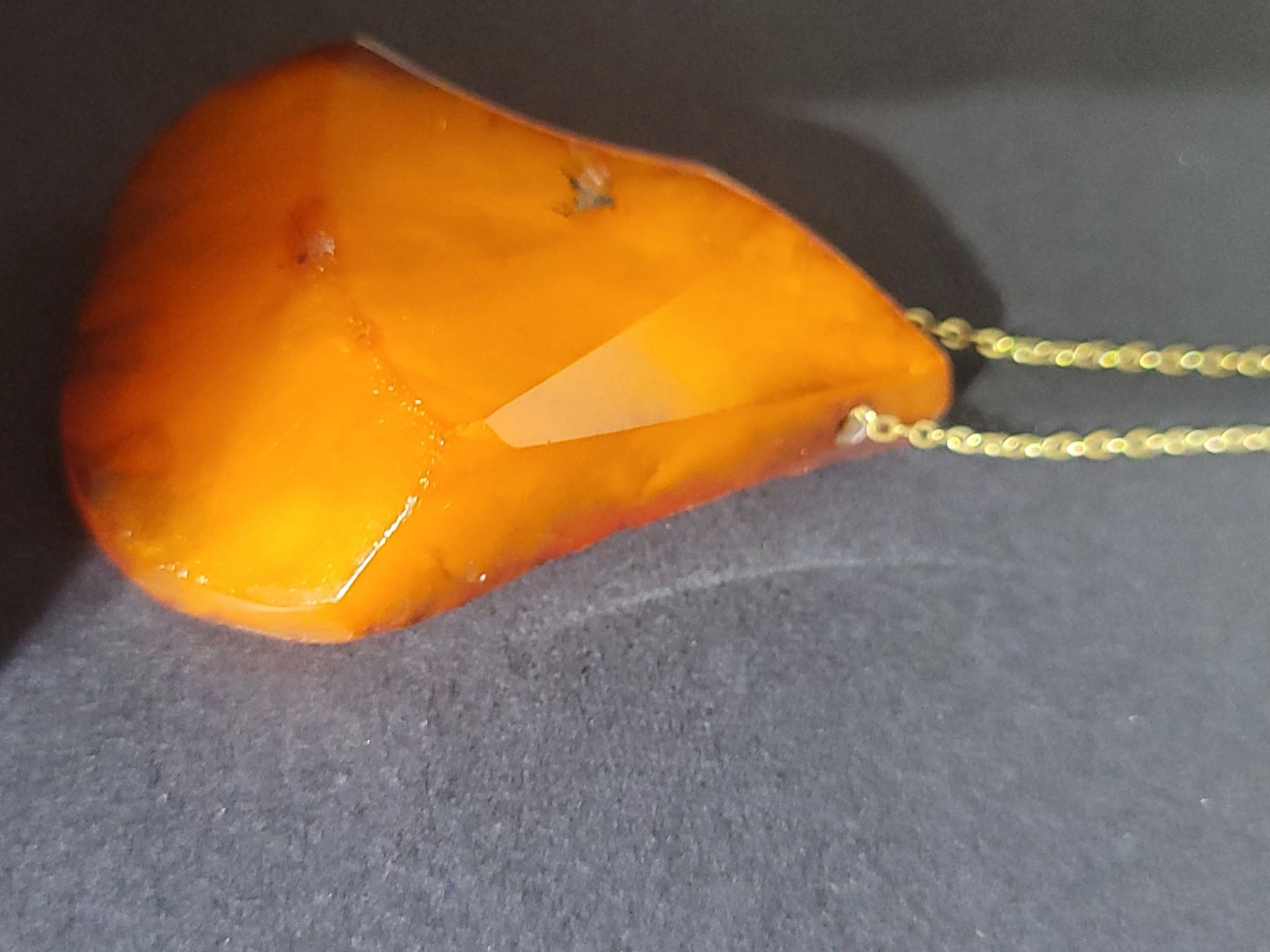 NECKLACE IS UNMARKED BUT IS GOLD. AMBER IS STUNNING. LARGE WITH INCLUSIONS. SEE PICTURES