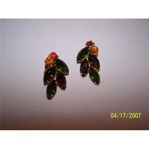 Up for sale is a gorgeous pair of Juliana Multi Color Rhinestone Clip Earrings. The green is a lot richer in color than the picture. They are prong set in goldtone. They are in terrific condition both front and back. There are no missing or dead stones.