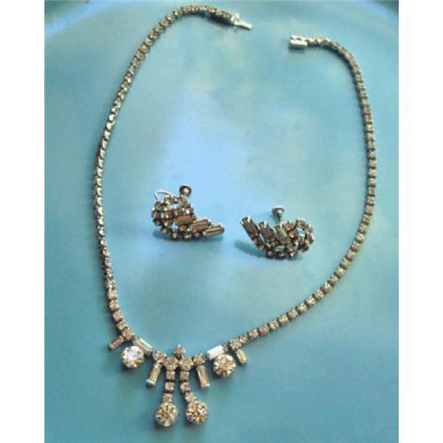 For sale, I have a very pretty and gorgeous Kramer Demi Parure Clear Rhinestone Necklace and Matching Scewback Earrings.