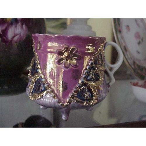 Absolutely gorgeous Victorian ornate all hand painted and decorate very large footed cup! This is a stunning example with rich lush colors of pinkish to lavender colors and cobalt blue and no holds on the use of pure gold! In very nice condition. Absolutely Stunning!