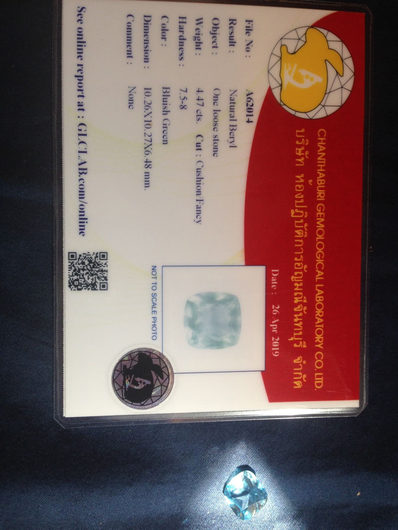 GORGEOUS NATURAL 4.47 CT CERTIFIED AQUAMARINE BERYL. FANCY CUSHION CUT MEASURING 10.26 x 10.27 x 6.48 mm.PLEASE SEE CERTIFICATION FOR FURTHER DETAILS. READY TO MOUNT.A MUST SEE. PICTURES DO NOT CAPTURE THE BEAUTY OF THIS AQUAMARINE. IT IS EYE CLEAN