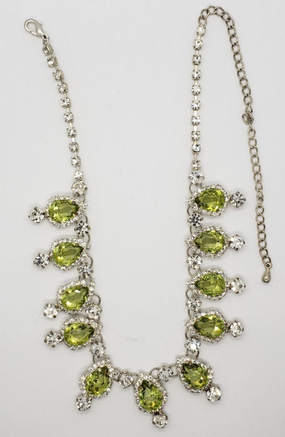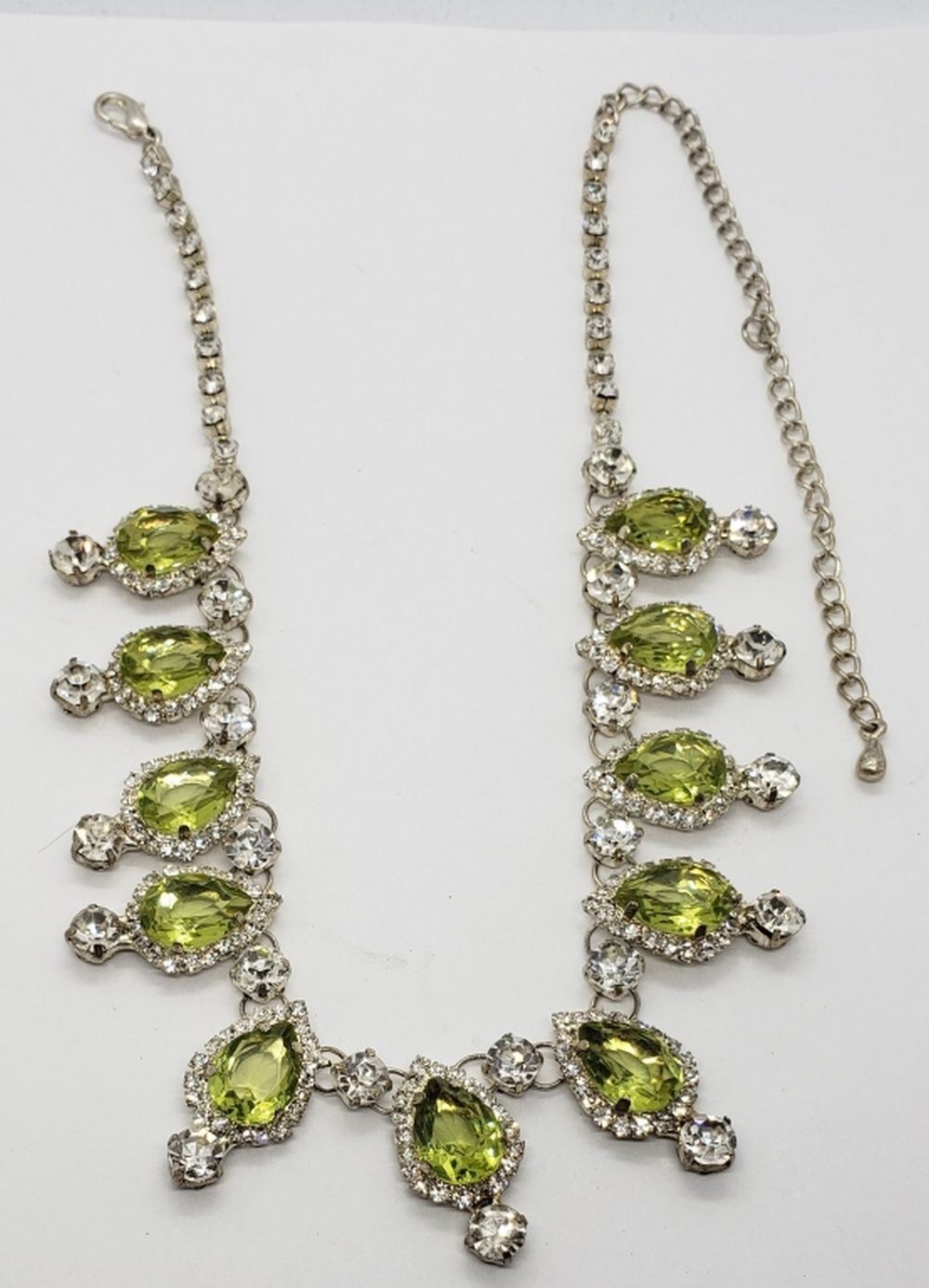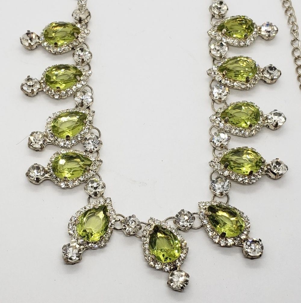 GREEN TEARDROP RHINESTONES THROUGHOUT! LOOKS NEW!