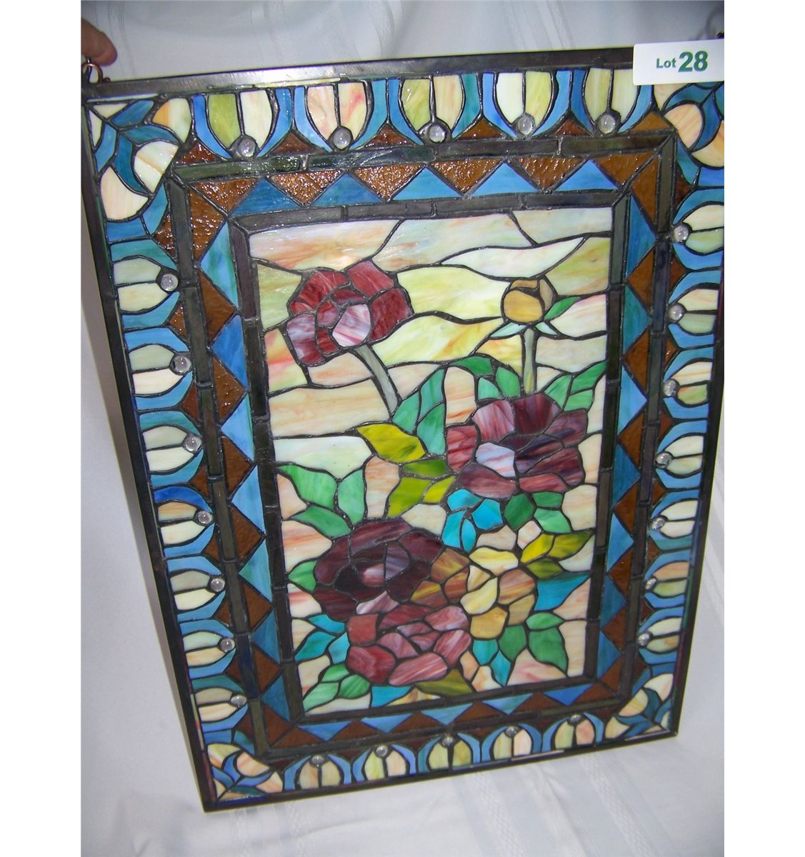 GORGEOUS STAINED GLASS FRAMED WALL HANGING, FROM THE NORBEAR A'LEMAN 'S COLLECTION