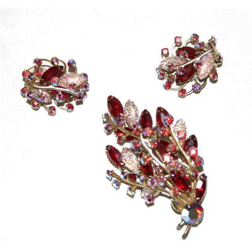 <tr><td>Title:GORGEOUS Vintage Rhinestone Brooch/Earrings</td></tr>