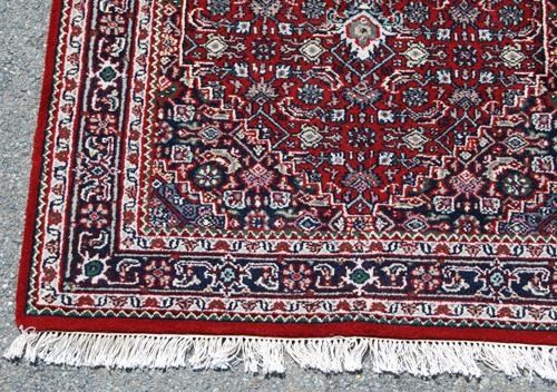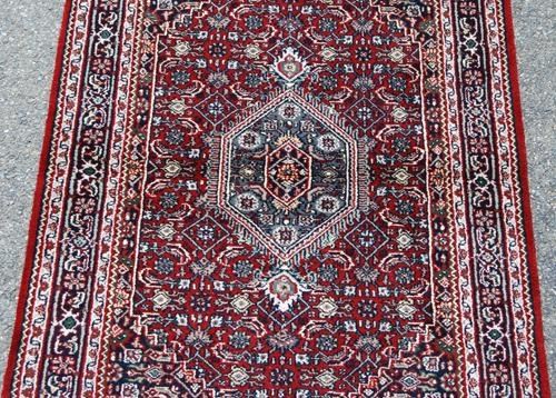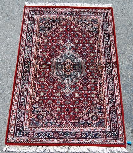 GORGEOUS NICELY DETAILED BIDJAR DESIGN RUG.SIZE 4.1 X 6.1 FEET, MADE OF FINE QUALITY BABY LAMB'S WOOL PILE ON COTTON FOUNDATION, EMPLOYING THE SPECTACULAR FISH(MAHI) DESIGN AND UTILIZING A RICH AND HEAVY COLOR PALETTE AND ENCAPSULATED BEAUTIFULLY BY AN INTRICATELY DONE FLORAL BORDER. A BEAUTIFUL HAND WOVEN RUG.
