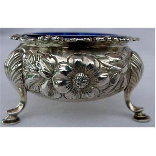 American repousse sterling silver open salt made by the Gorham company (and retailed by their 5th Avenue, New York store, merged with Black Starr and Frost in the