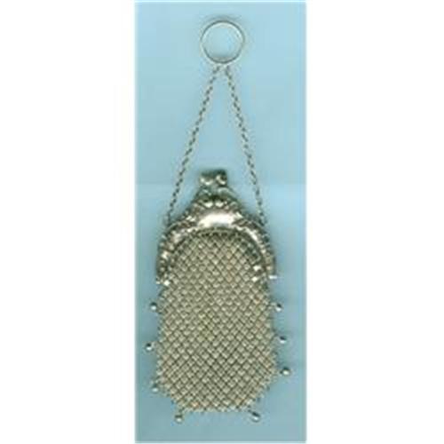 </font></strong>Sterling silver chatelaine PURSE. This piece is by Gorham and has all the style you expect from them. The body is star shaped flat chain mail and features 8 tiny dangling balls (all intact). The frame has floriate scrolling and leaves with a small loop. The clasp is 2 putti cherubs. It features full maker's marks for Gorham and a style number. The "body" of the purse is 4-1/2" long and overall the piece is 7" long. This piece is in excellent condition</font>