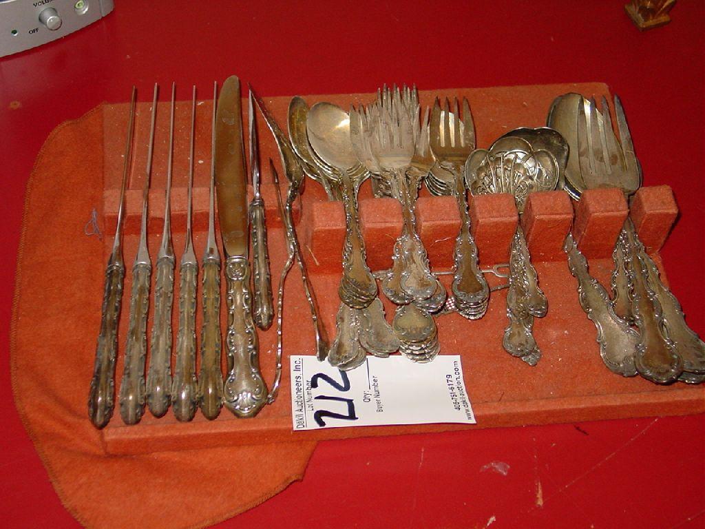 GORHAM STERLING SET OF ANTIQUE SILVERWARE W/SERVING PIECES