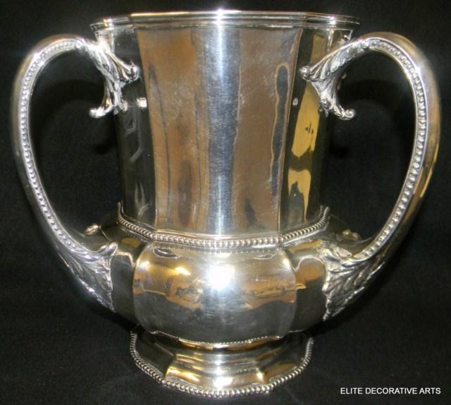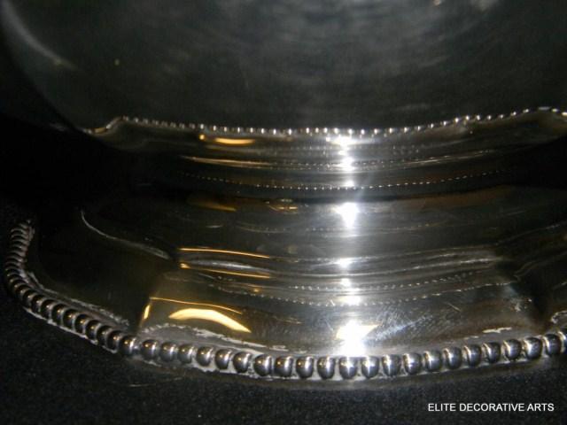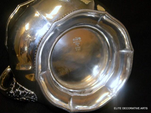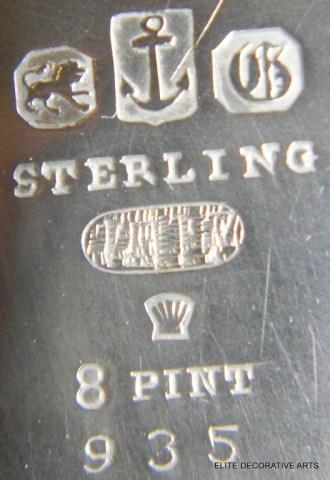 Has a fabulous beaded scroll design. No monogram or removals. Makers mark to bottom. Also marked 935. Holds 8 pints. Measures 9 3/4" h X approx 10" dia. 60ozt