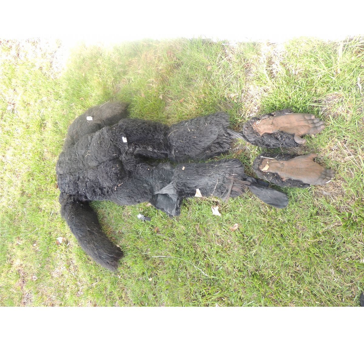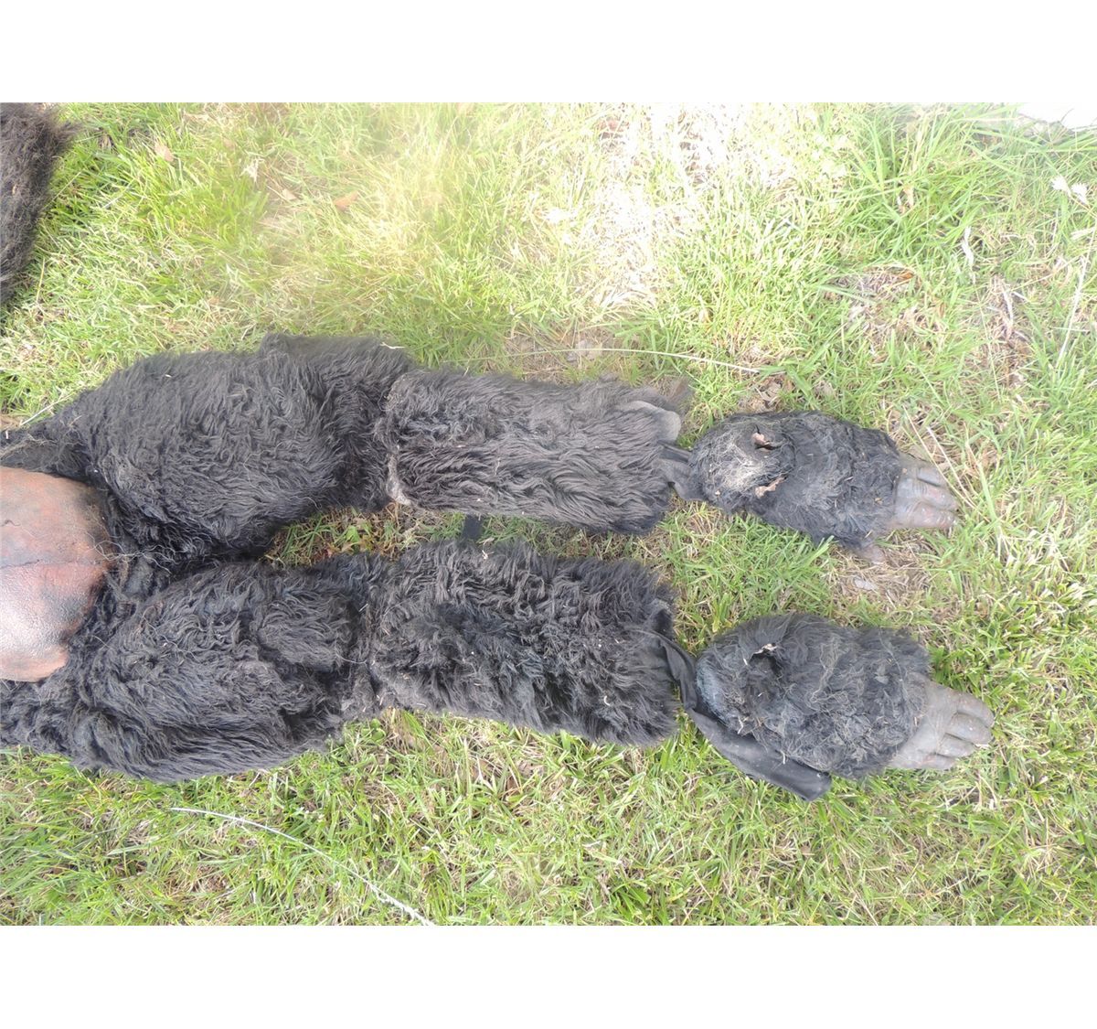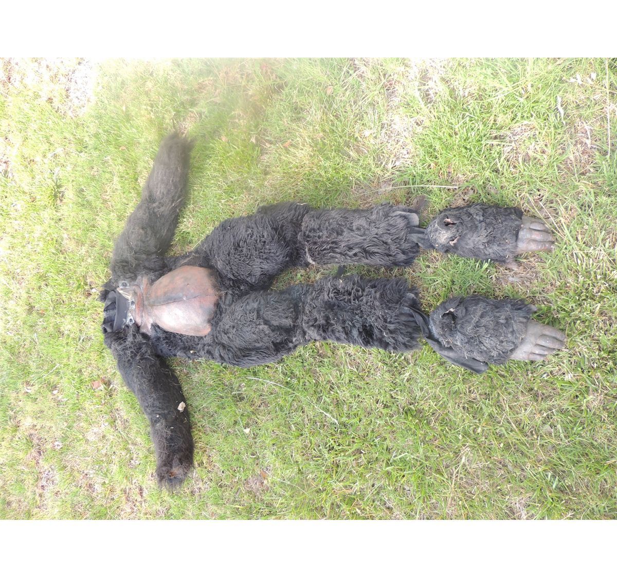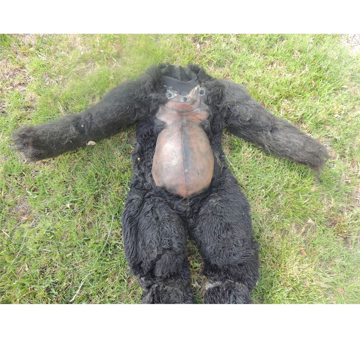 This is a Monkey or Pregnant Gorilla or ape body suit with matching feet. All Latex on a body sock with real fur. This is very well made!