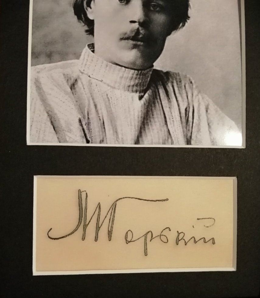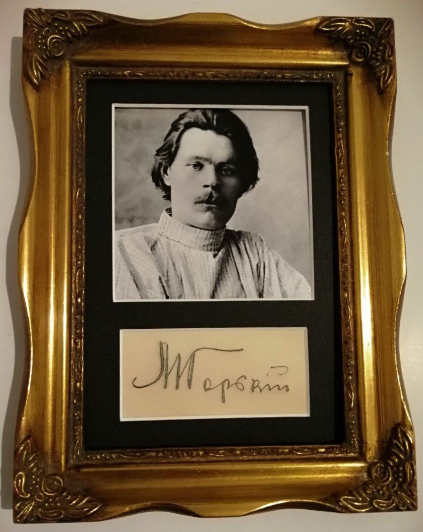 Alexei Maximovich Peshkov, primarily known as Maxim Gorky, was a Russian and Soviet writer, a founder of the socialist realism literary method, and a political activist. He was also a five-time nominee for the Nobel Prize in Literature. Gorky's autograph is mounted and framed in an antique gold style frame and is supplied with coa.