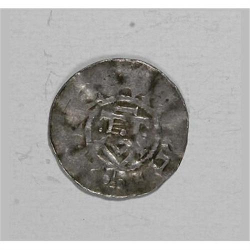 <B>GOSLAR. Royal mint, around the time of Otto III, 983-1002.</B></I> Denar or Pfennig, the so-called Otto-Adelheids-Pfennig. Similar to previous lot, but Obole or Halbling. Bonhoff 284. Rare.<BR><BR><BR><b>Shipping:</b> Coins & Currency (<a target="_blank" href="http://www.heritageauctions.com/common/shipping.php">view shipping information</a>)